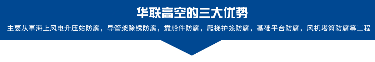 歡迎訪問(wèn)鹽城市華聯(lián)高空維修防腐有限公司官方網(wǎng)站!公司主營(yíng):海上風(fēng)電升壓站防腐,風(fēng)機(jī)導(dǎo)管架除銹防腐,靠船件防腐,塔筒防腐,鋼管樁套籠防腐,基礎(chǔ)平臺(tái)防腐,編號(hào)標(biāo)識(shí)噴涂等工程 返回首頁(yè) | 加入收藏 | 聯(lián)系我們
